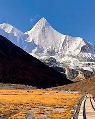 Sacred Snow Mountains: The three towering peaks of Yading: Chenresig, Jampayang, and Chenadorje. Standing majestically against the clear autumn sky and the snow-covered summits. Offering breathtaking views and adding to the region’s natural beauty.