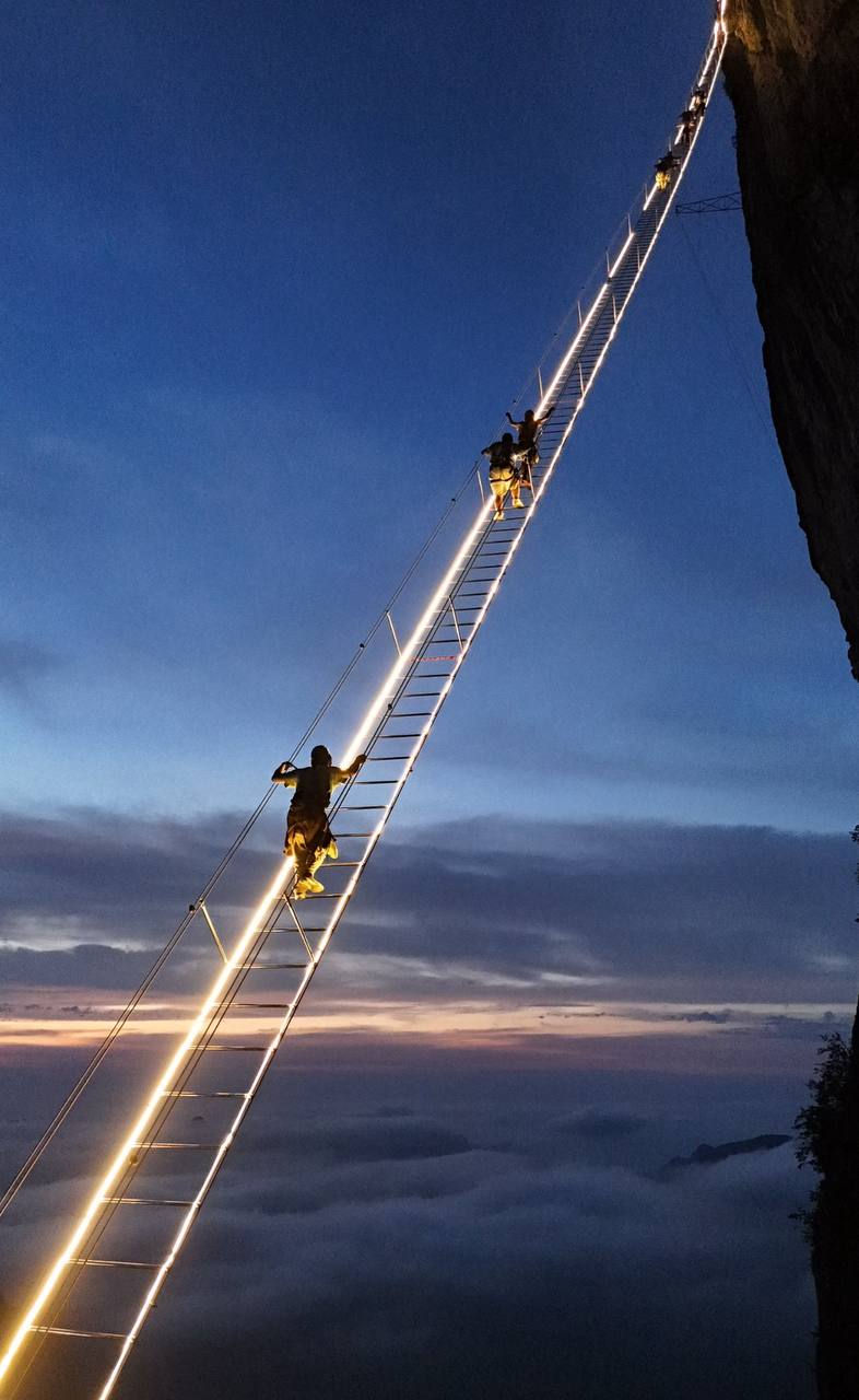 Soaring between the cliffs of the Zhangjiajie Grand Canyon (张家界大峡谷), the Glass Bridge is more than a landmark, it’s a leap of faith. Forget railings and solid ground; here, you walk on transparency, suspended high above one of China’s most dramatic natural landscapes.